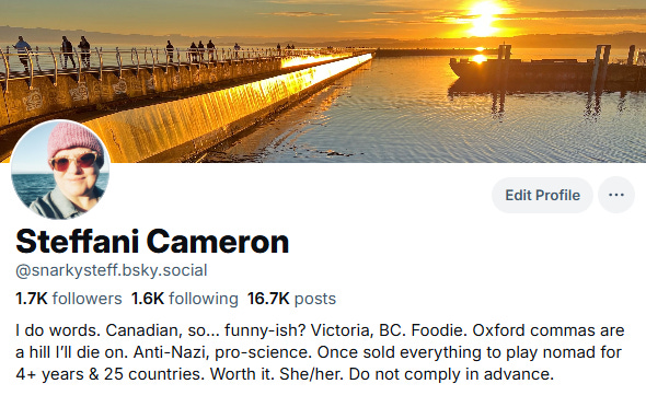 Here’s my profile banner, and I’m SnarkySteff, I’ll be your tour guide.