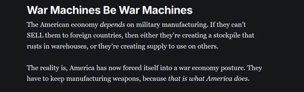 Three months ago, I said the USA would go to war at their earliest convenience, because it was the only way to manufacture an economy while the world slowly closes its doors on them. Now here we are.