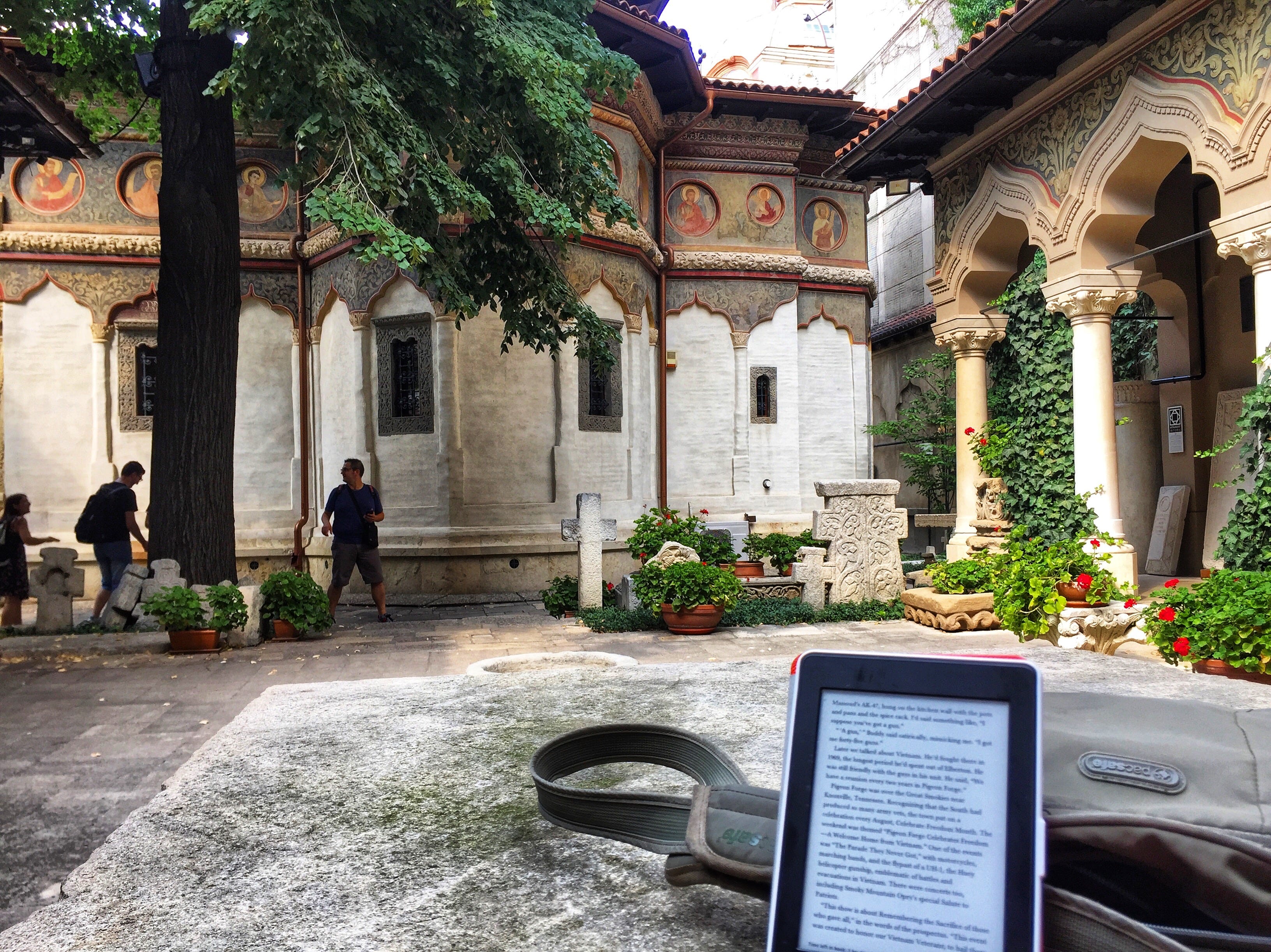 Photo: There came a time when most of my travels were about where I would sit down next. This was a rare day of exploring in Bucharest, Romania — where things took a turn and my nomadic end days began. But if you’re gonna be a hobbled traveller and incapable of going far between breaks, I recommend bringing a book [or Kindle e-reader] and sitting in a 18th-century monastery courtyard; like this, the Stavropoleos Monastery Church, from 1724.