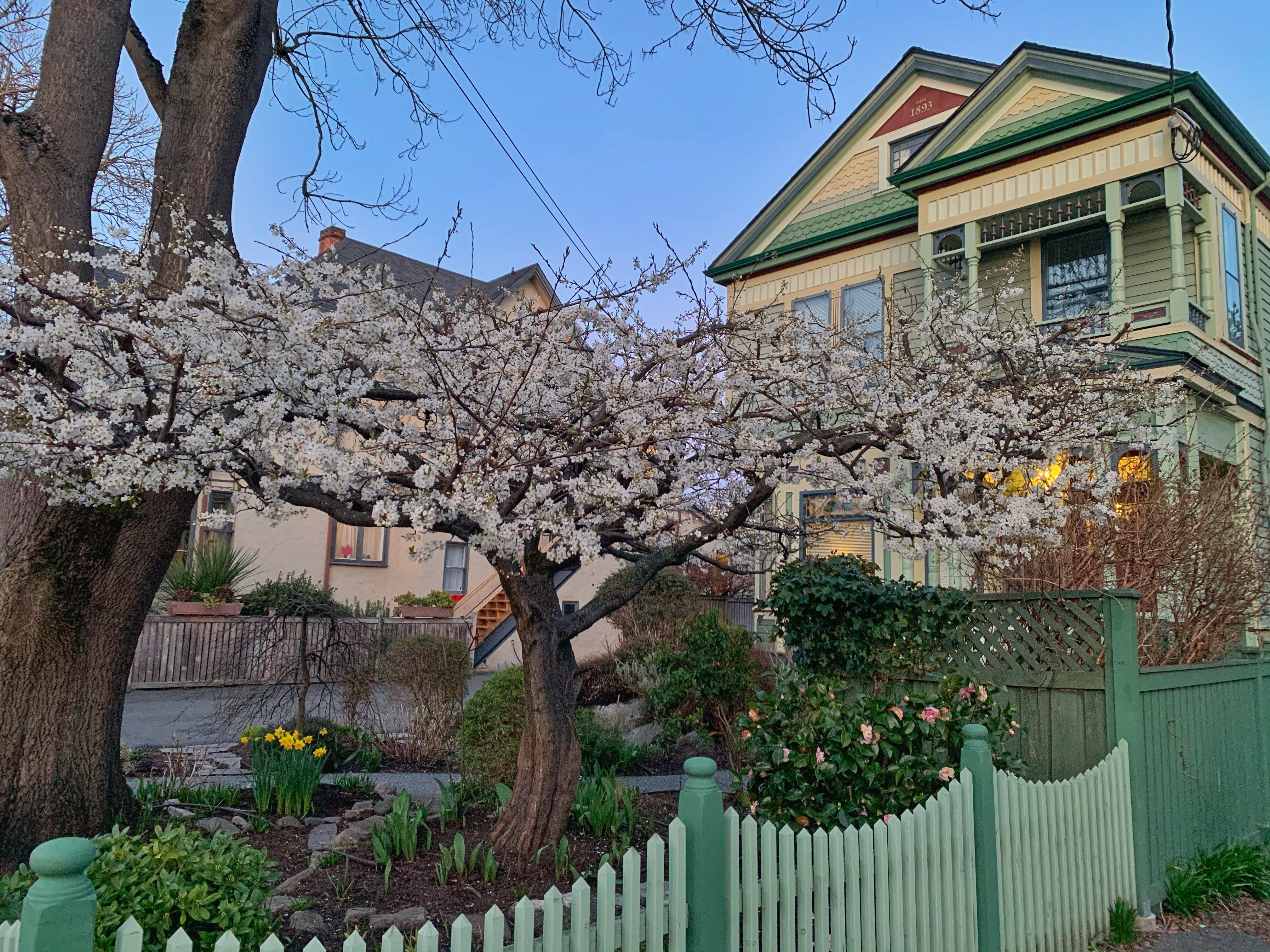 Photo: Snapped this two nights ago. Spring is late to come to Victoria this year, after we got 1-2 feet of snow in mid-February, but it’s stunning as usual. This is a heritage home in James Bay, Victoria.